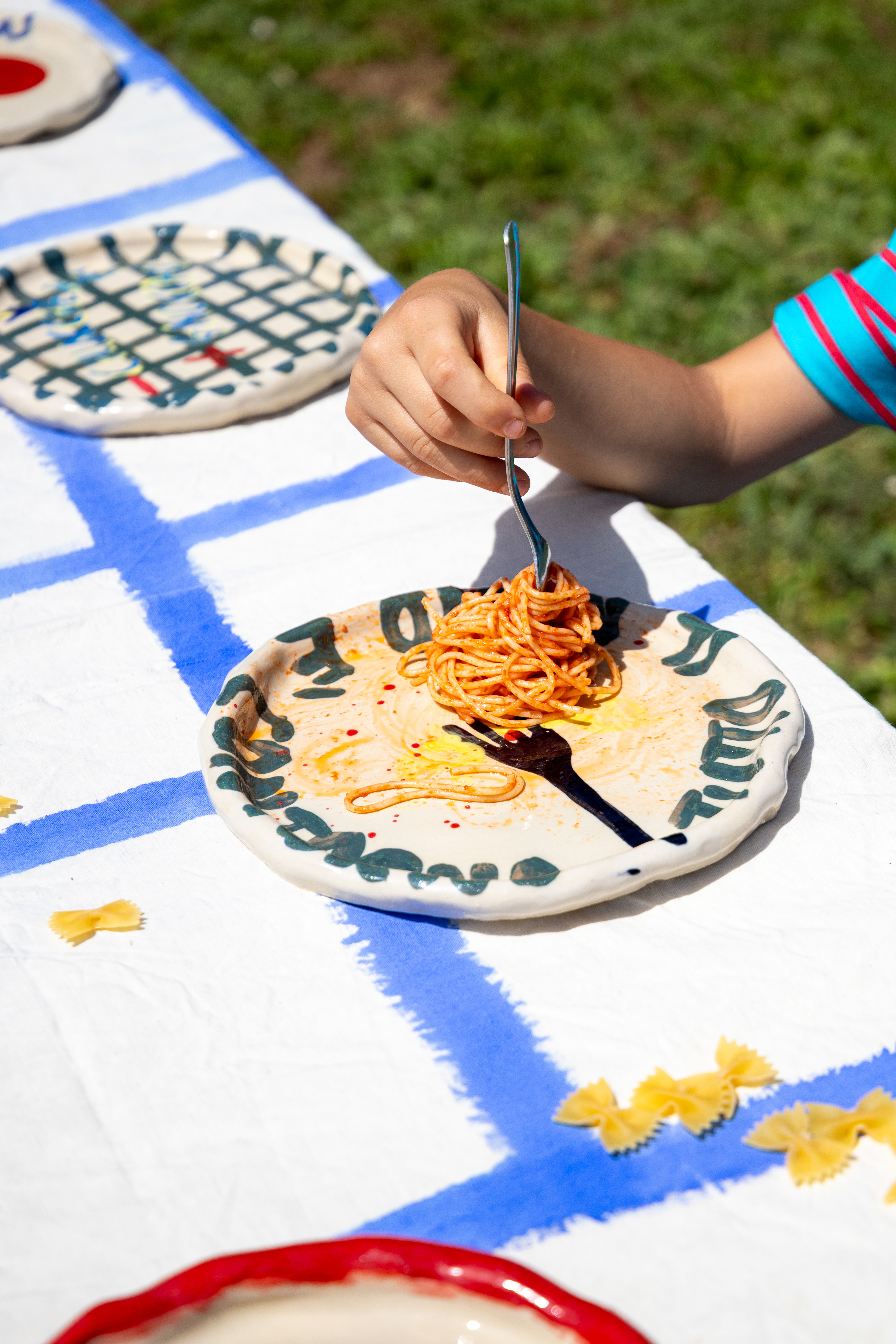 “MAMMA CHE FAME!” è una collezione di piatti in ceramica, decorati da Alice Del Ferraro e suo figlio Ernesto, di 10 anni. Una collezione affamata: di vita, di libertà, di relazione. Di tavole da apparecchiare e da vivere. I piatti sono acquistabili qui: https://www.alicedelferraro.com/shop/piatti-mamma-che-fame
